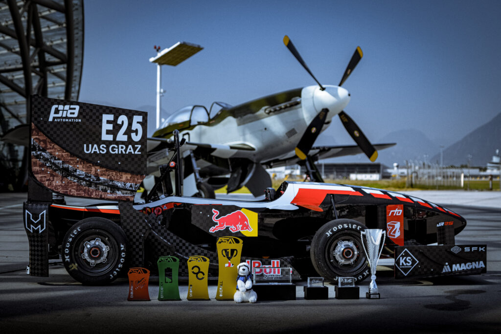 Seit der Saison 2022 bauen wir einen elektrischen Rennboliden. Mit dem JR22 haben wir bei den Bewerben FS Netherlands und FS Austria Siege in den einzelnen statischen Disziplinen geholt. Aber auch in unserer ersten Saison mit einem elektrischen Boliden konnten wir bei der FS Alpe Adria in Kroatien bereits eine Gesamtwertung für uns entscheiden. Damit sind wir das allererste österreichische Team, das einen Gesamtsieg in der Elektro-Klasse bei einem Formula Student Wettbewerb einfahren konnte.